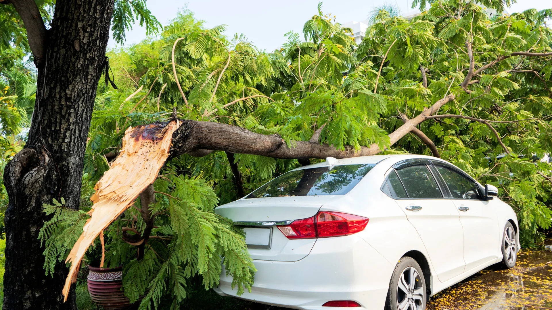 Se uma situação deste tipo, ou de uma estrutura que ceda, danificar o seu carro, o prejuízo pode ser considerável (no limite, irreparável) – dependendo da dimensão da estrutura, árvore, árvores ou ramos que tombaram em cima do seu veículo.